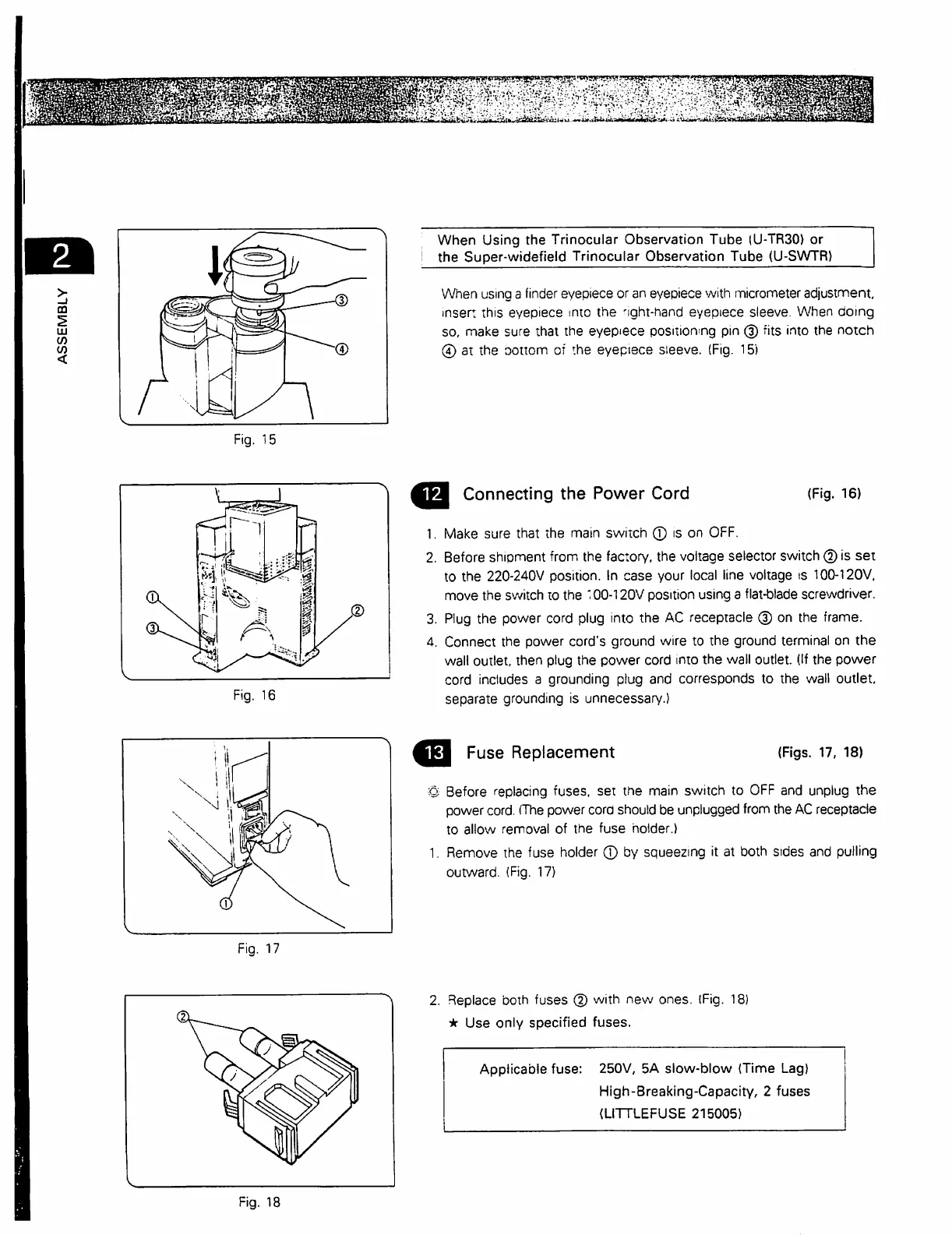 Olympus BX60M - Connecting the Power Cord; Fuse Replacement