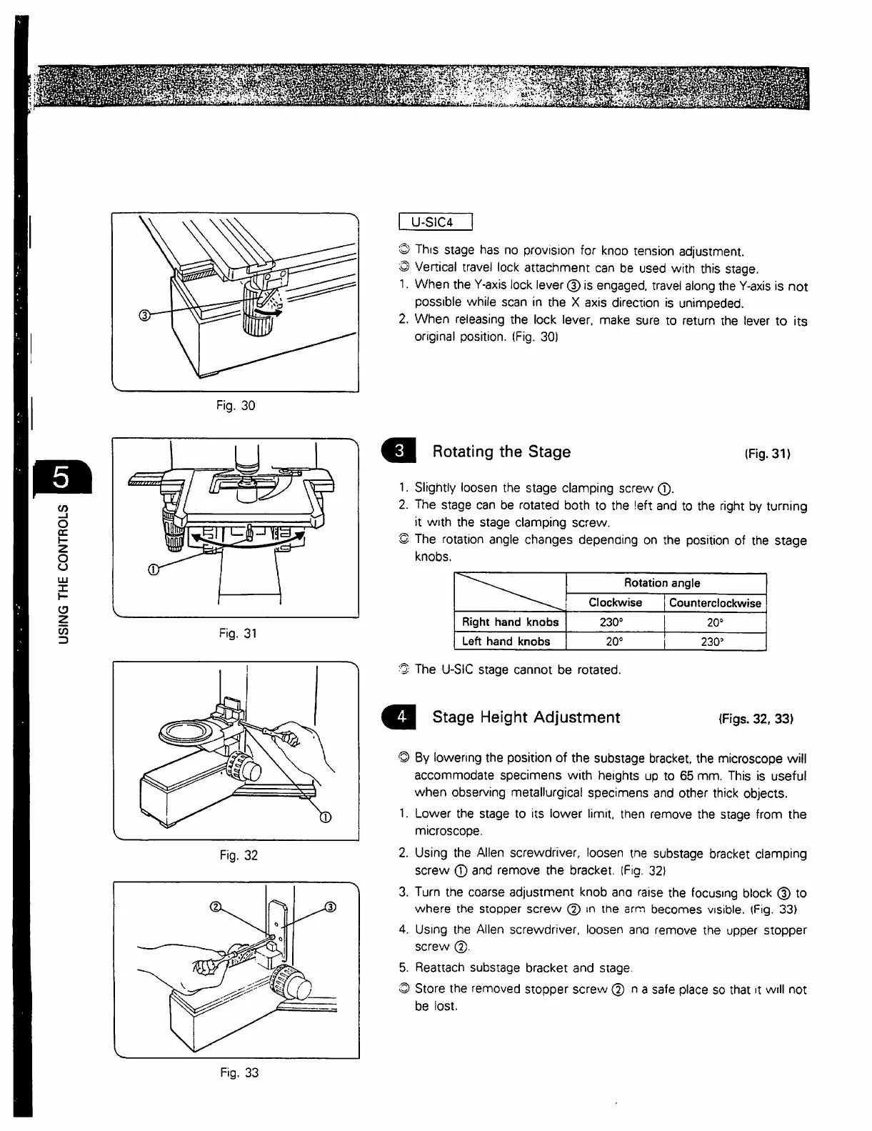 Olympus BX60M - Rotating the Stage; Stage Height Adjustment