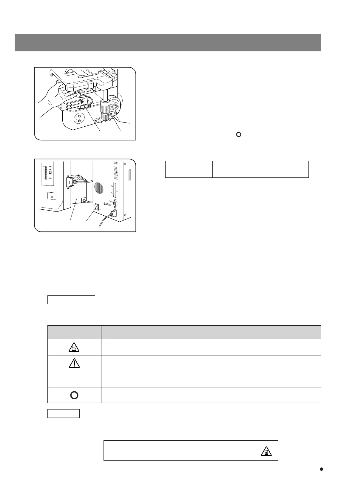 The following symbols are found on the microscope. Study the meaning of the symbols and always use the equip-
