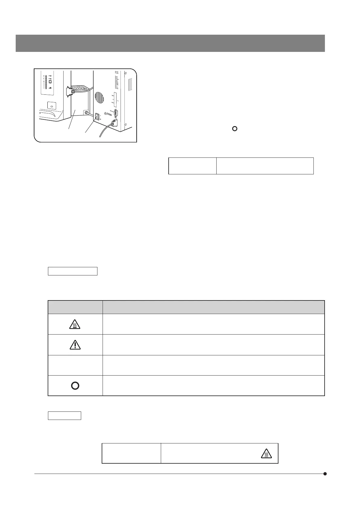 Indicates that the surface becomes hot, and should not be touched with bare hands.