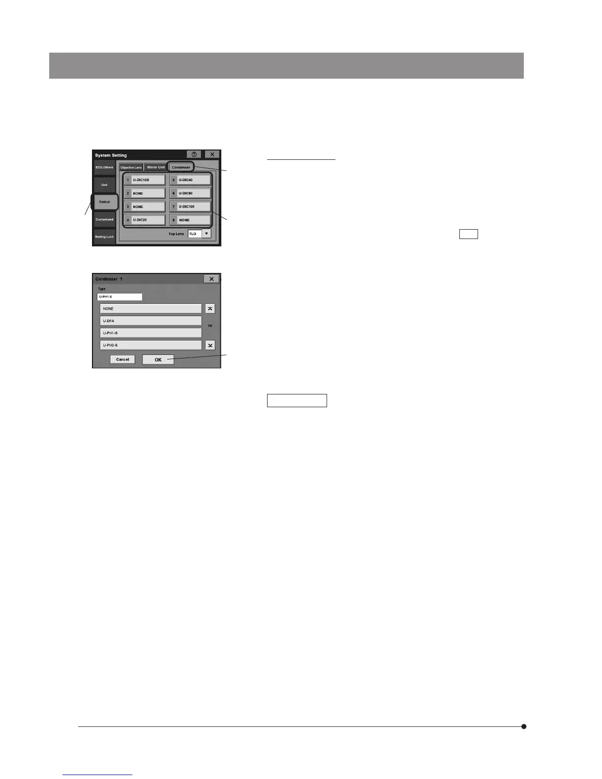 2. Tap the [Condenser] tab ² in the [Optical] display (Fig. 13).