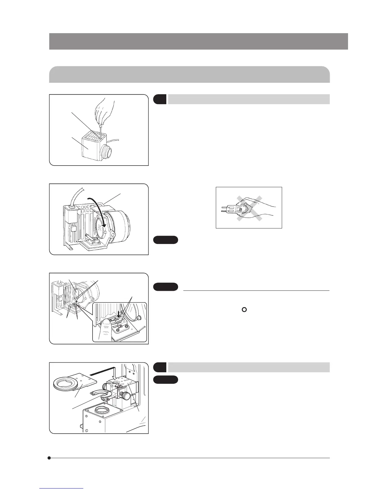 To prevent reduced bulb life or cracking, do not touch the bulb
