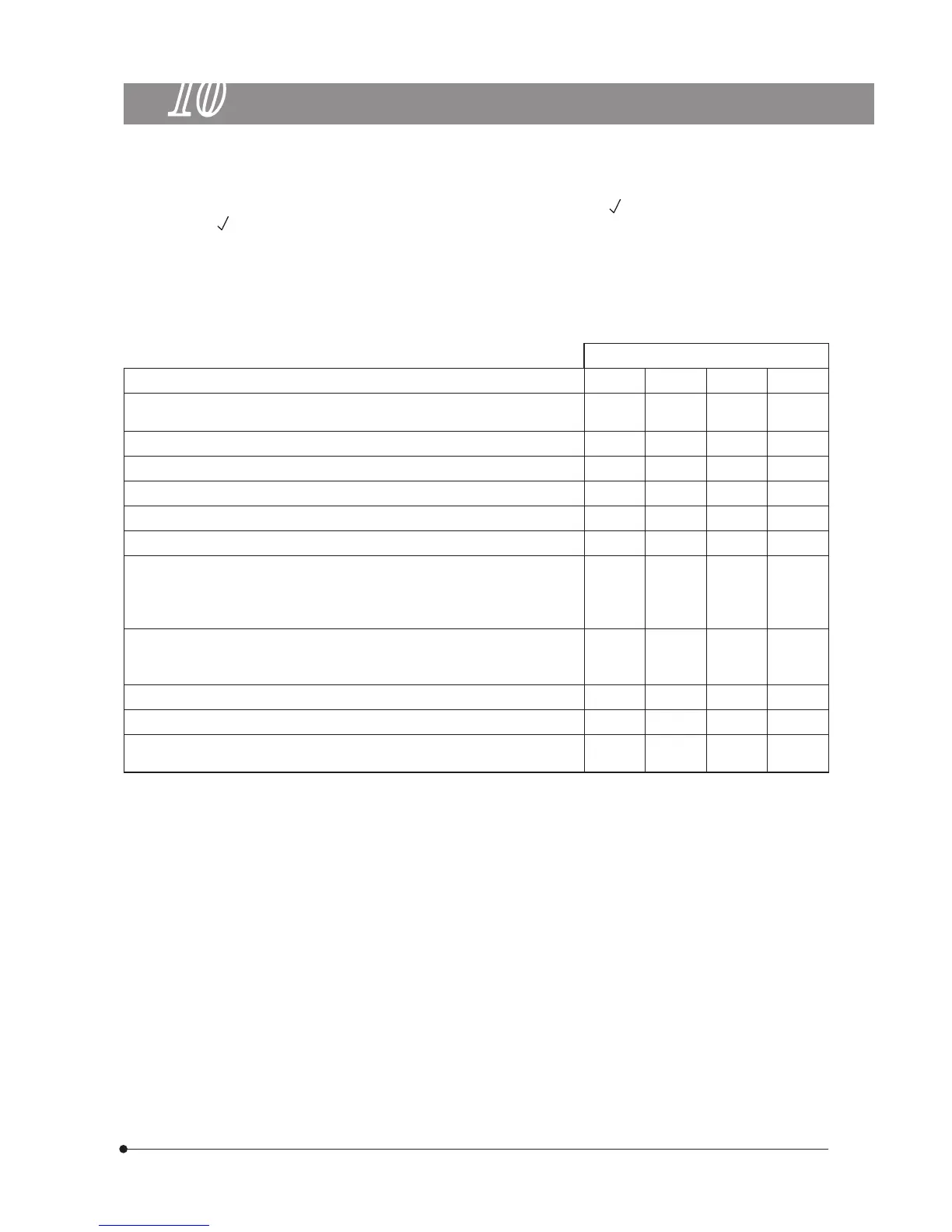 { The table below identifies the check items to be observed. Put (–) if not applicable or (