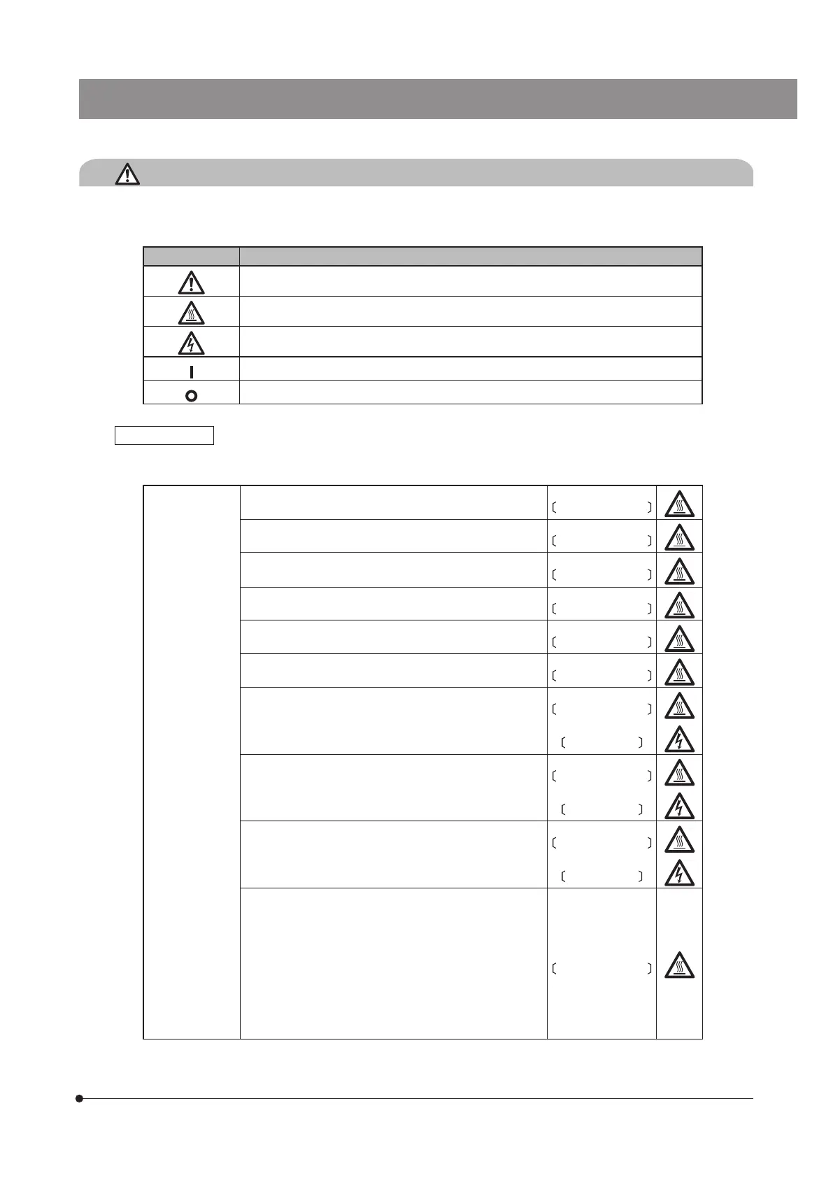 Indicates that the surface becomes hot, and should not be touched with bare hands.