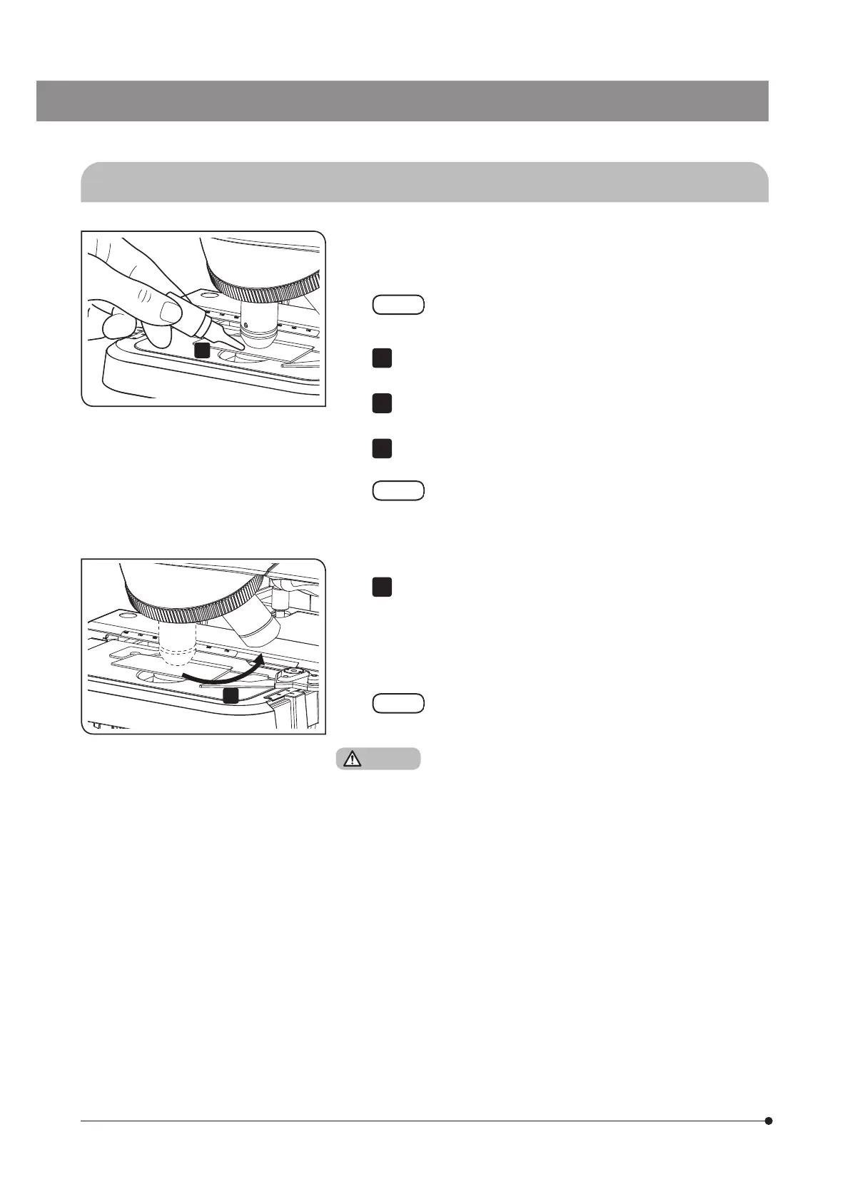 After use, lower the stage, turn the nosepiece 90° and remove the