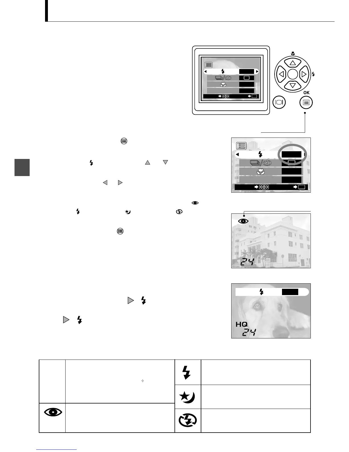 Flash automatique[Flash atténuant l’effet “yeux rouges” [Flash