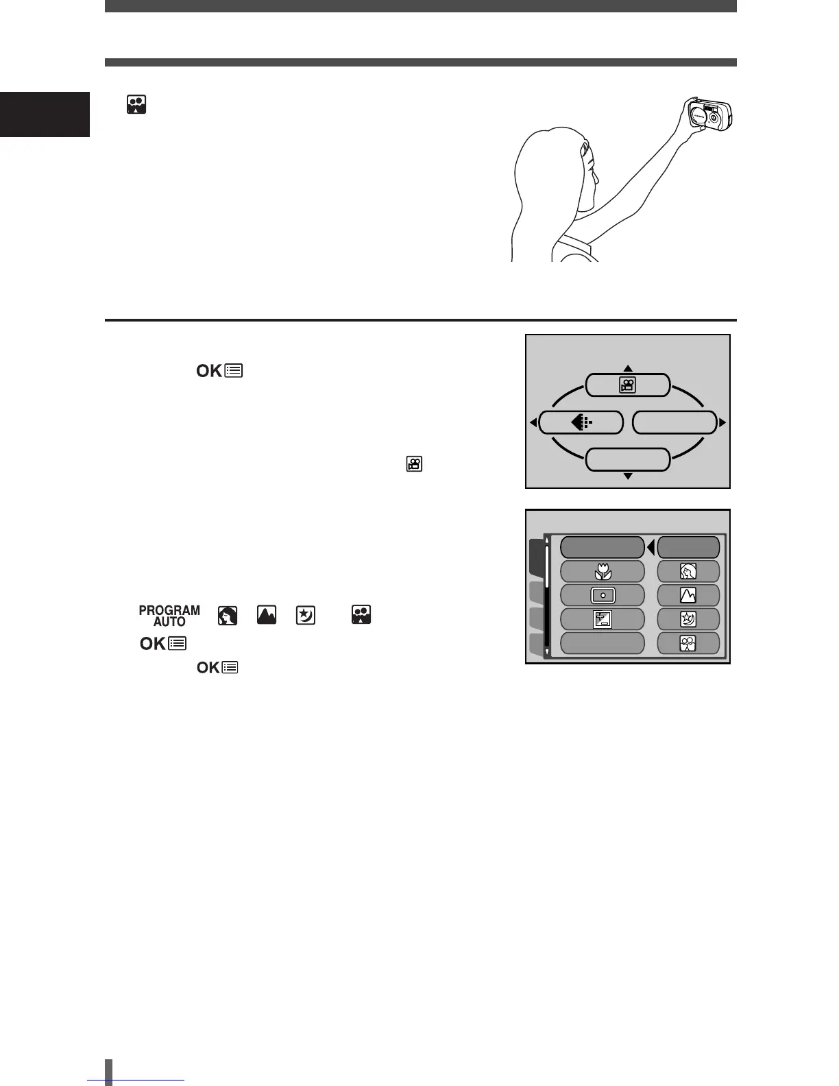 • Movie recording: Press Ñ to select .