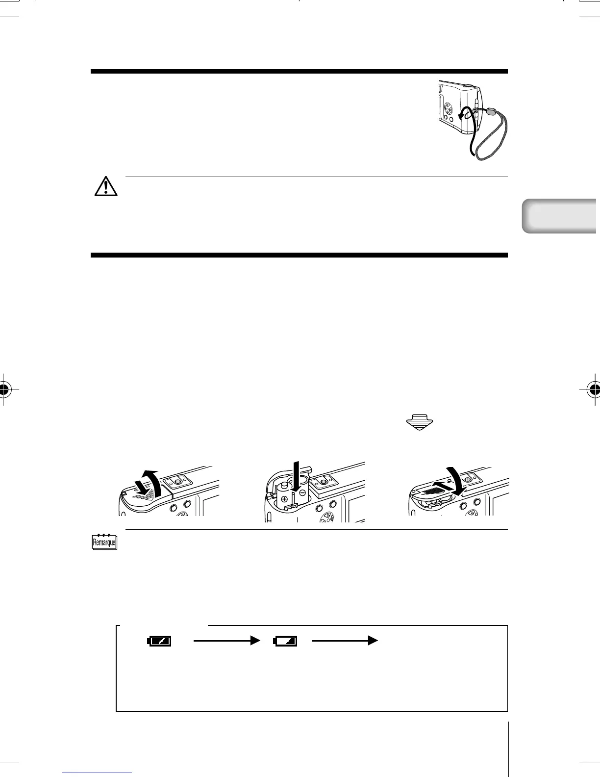 • Lors de l’alimentation de l’appareil avec des piles, si les piles deviennent