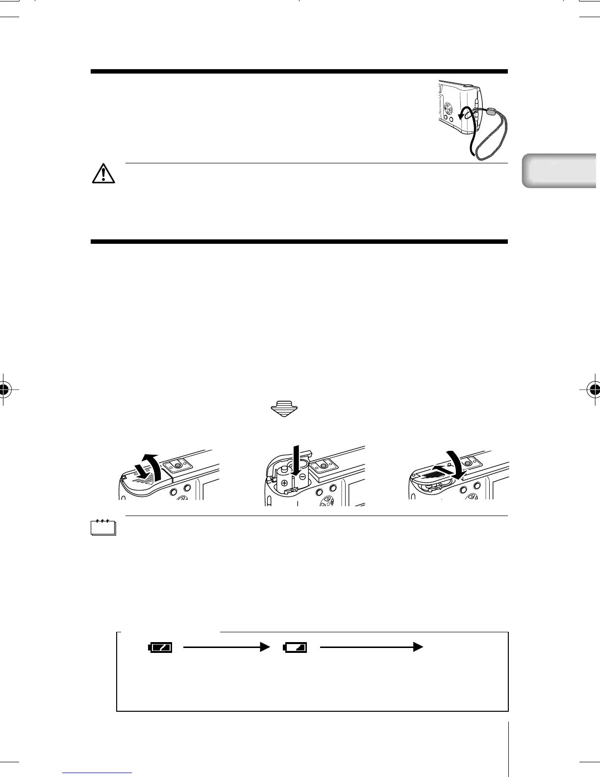 • When powering the camera by batteries, if the batteries start to run low, the
