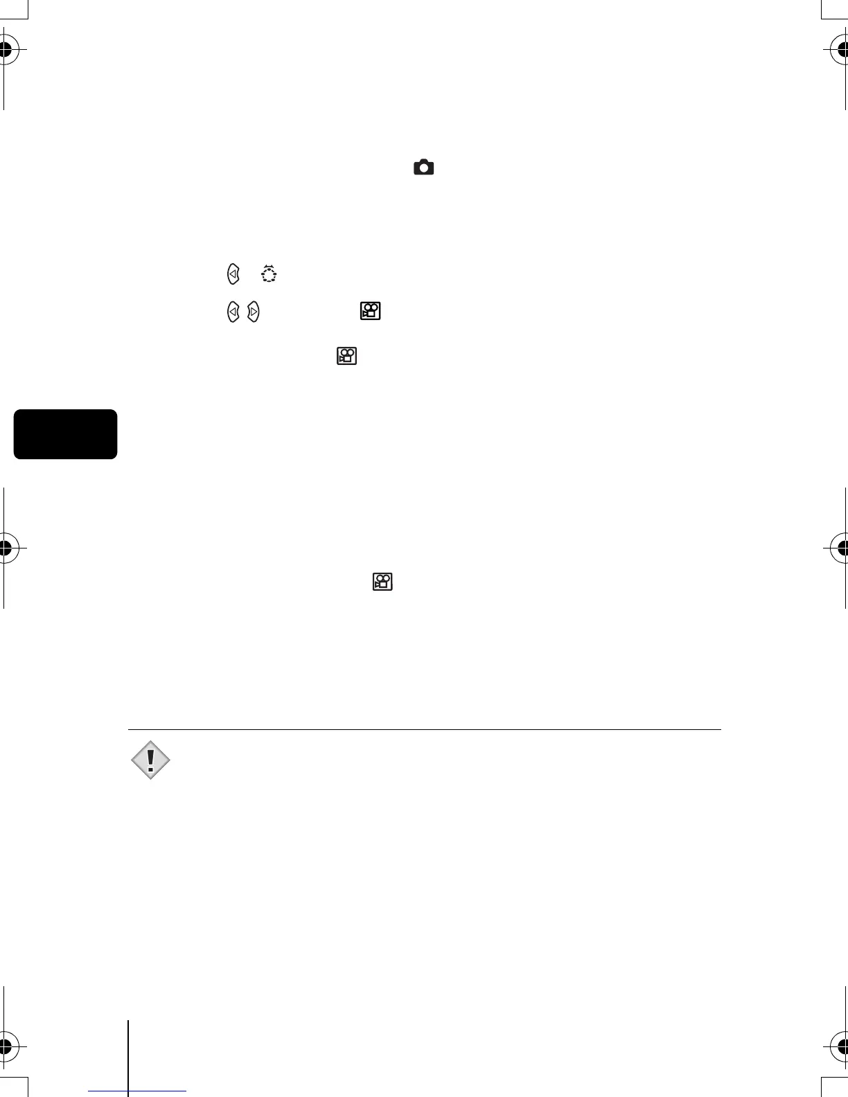 • On the monitor, the mark and the remaining recording time of the