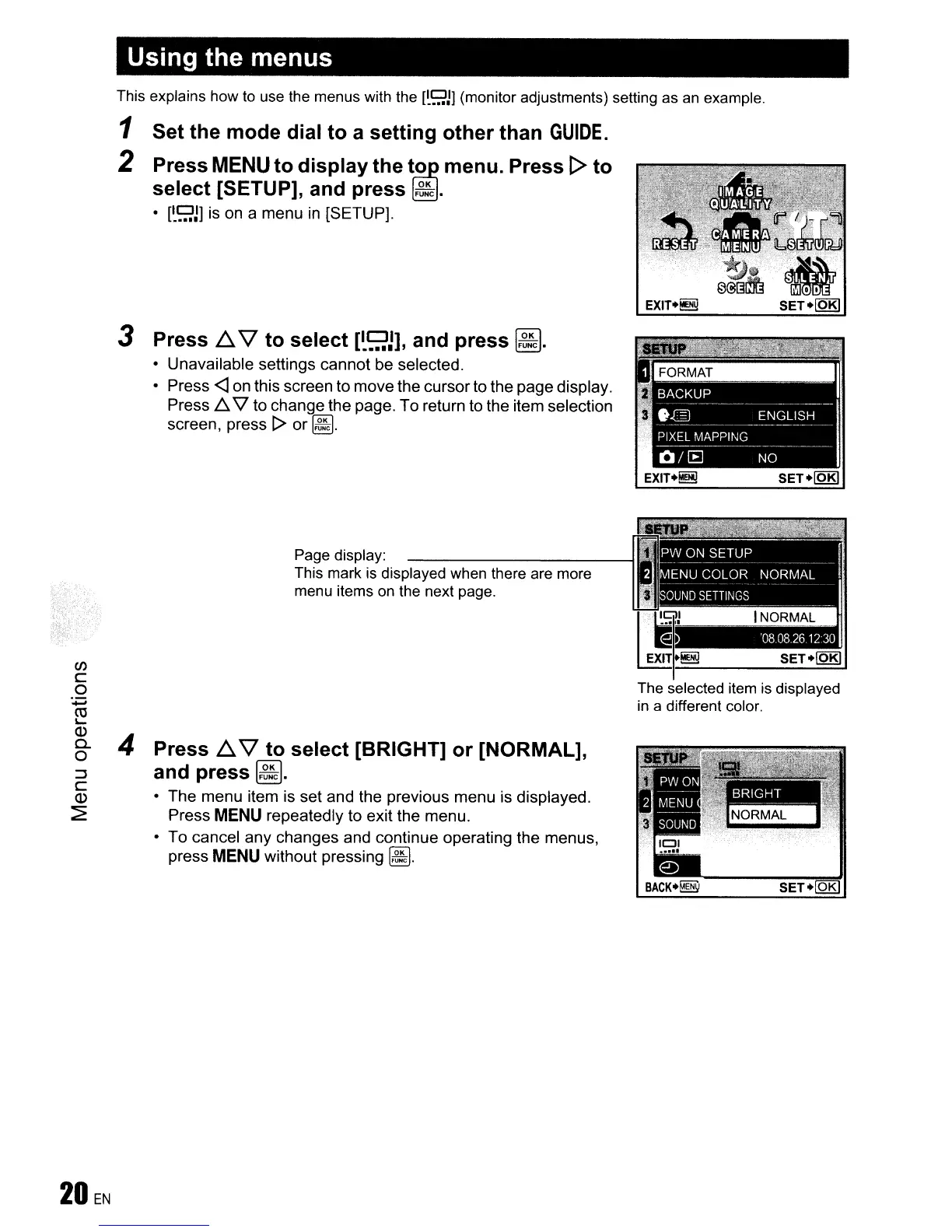 to select [BRIGHT] or [NORMAL],