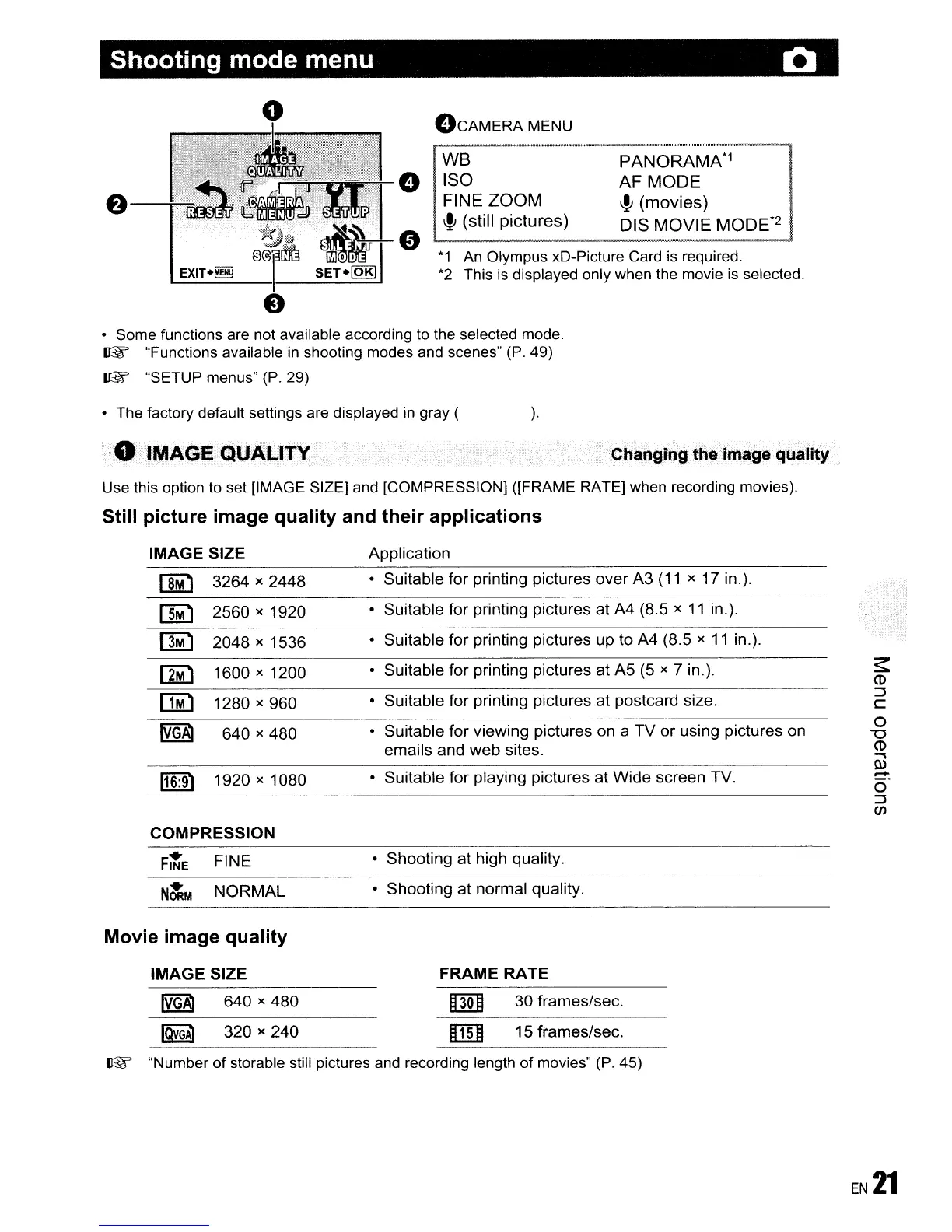 set [IMAGE SIZE] and [COMPRESSION] ([FRAME RATE] when recording movies).