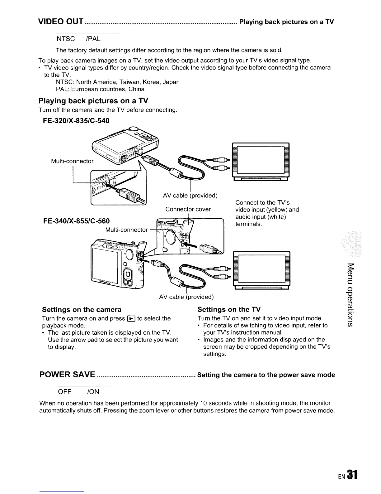 automatically shuts off. Pressing the zoom lever or other buttons restores the camera from power save mode.