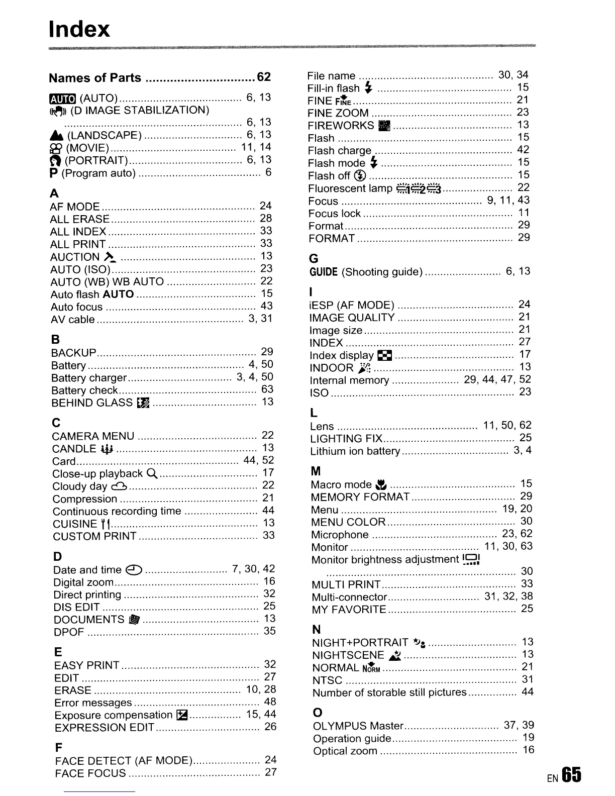 Close-up playback Q................................. 17