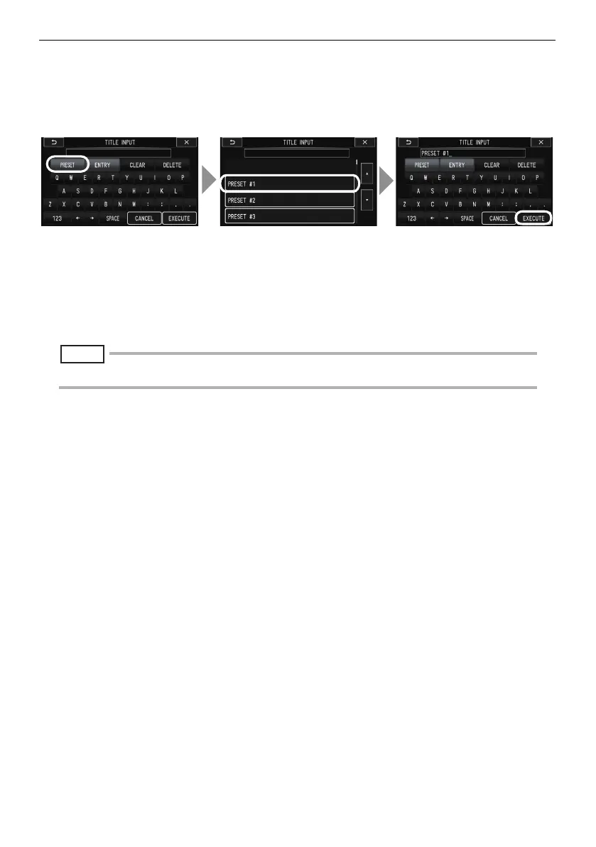 This displays a list of preset titles. To stop selecting a preset title, touch the J (Previous)
