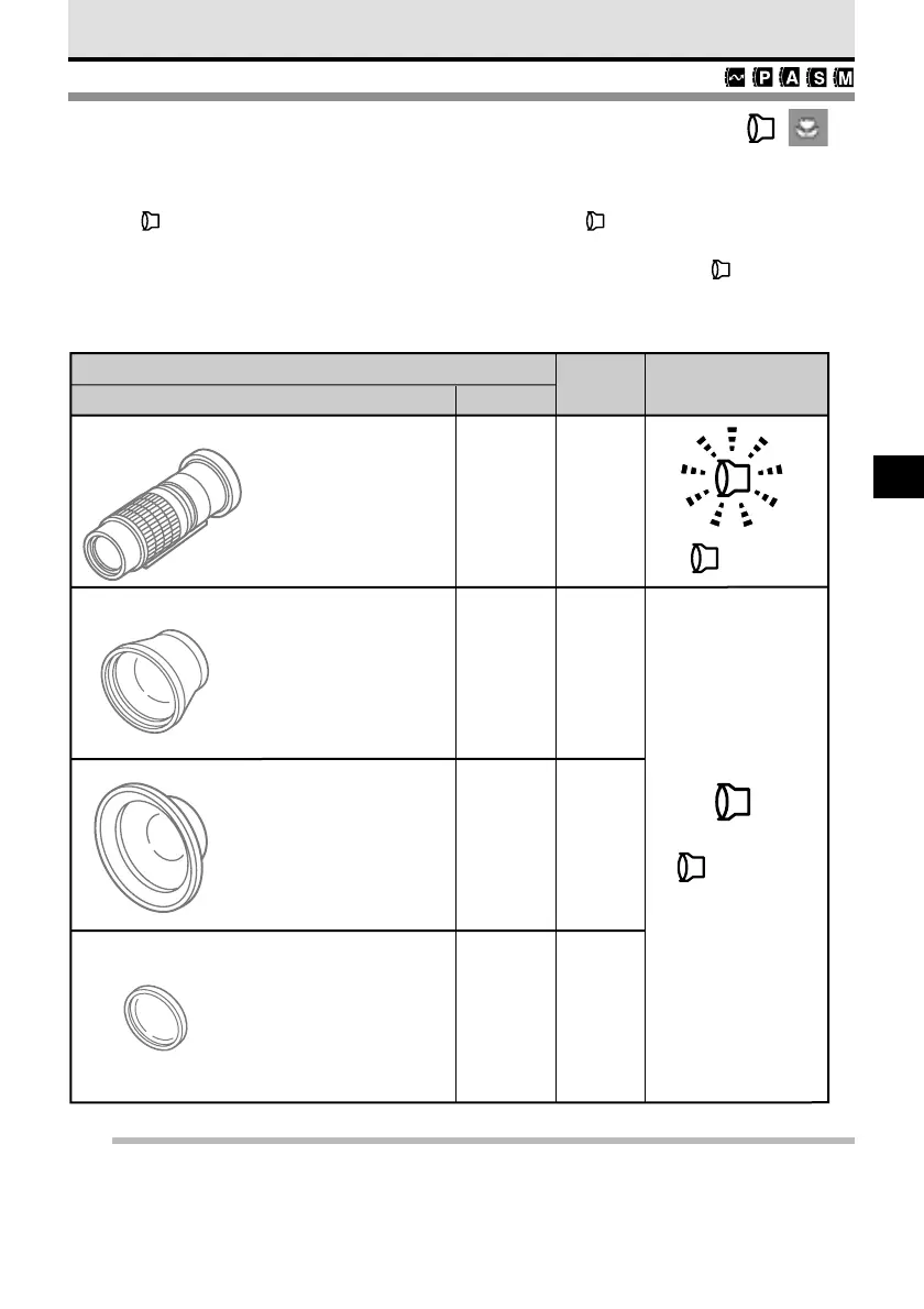 The conversion lenses listed below can be attached to this camera. When you use a