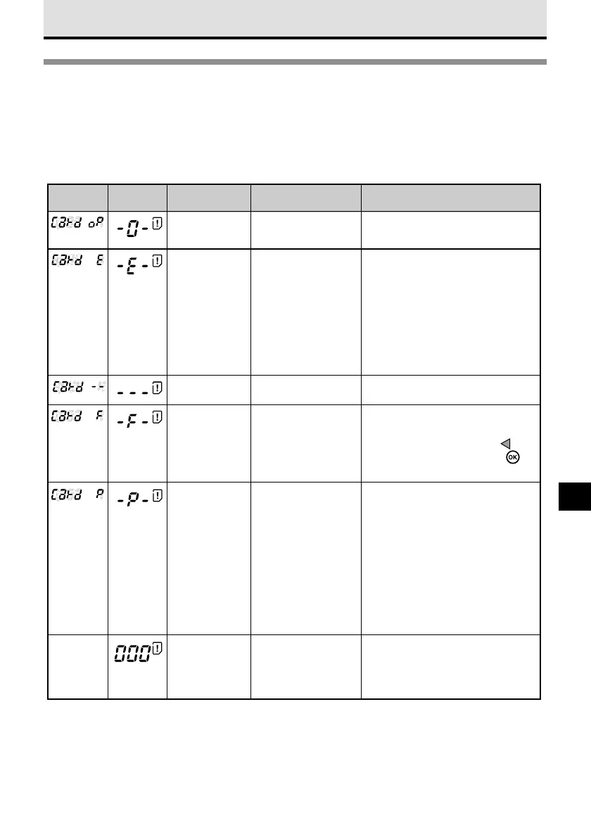 If a problem occurs with a memory card, a message will be displayed in the control panel