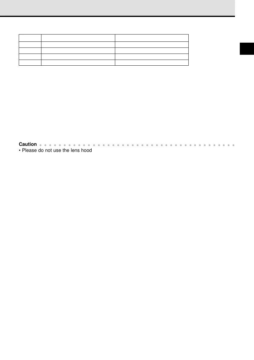 darkening of the corner areas of the image). The ranges in the table above assume that no such