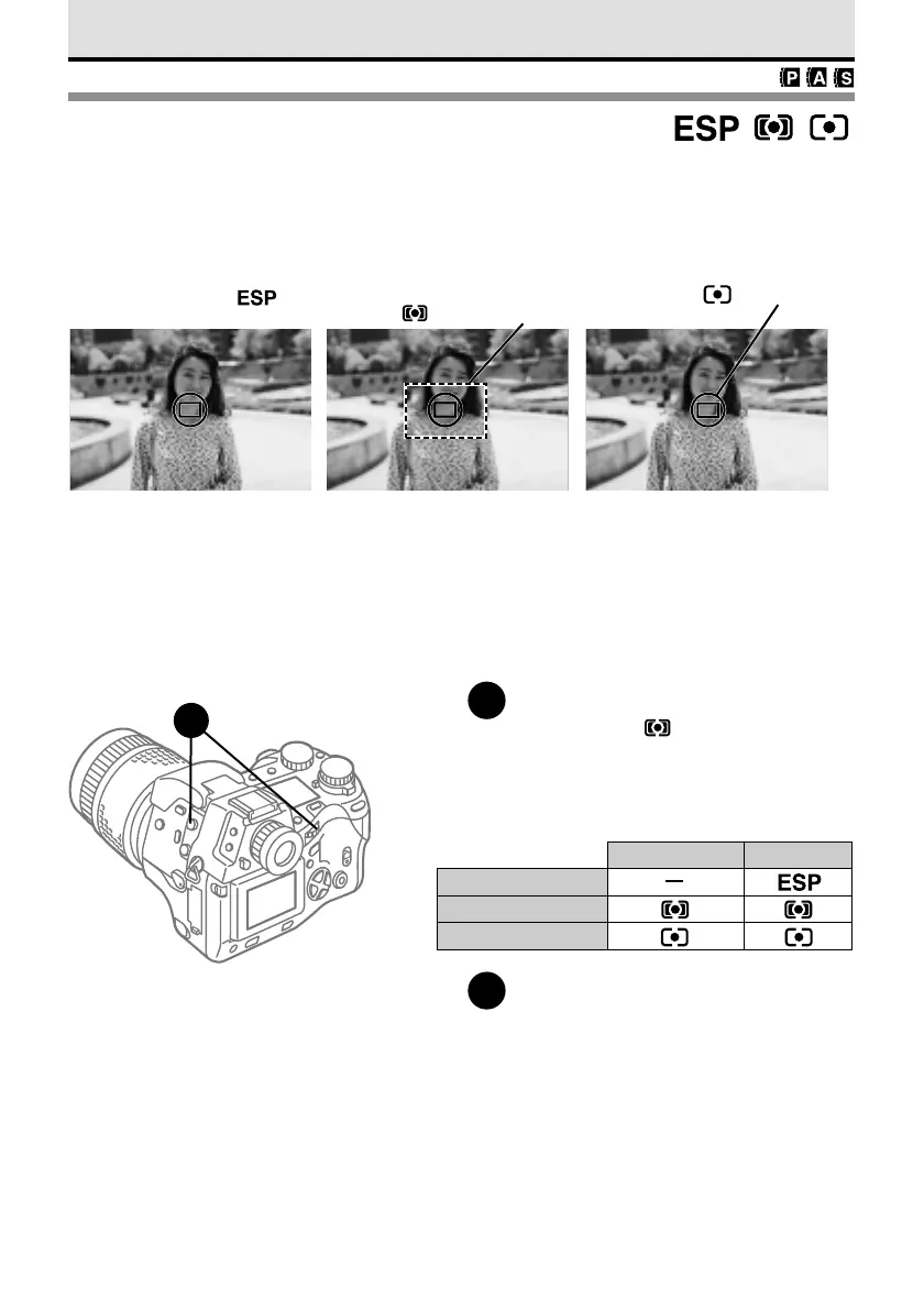 surrounding area, or when there is an object in the background brightly lit, digital ESP metering may
