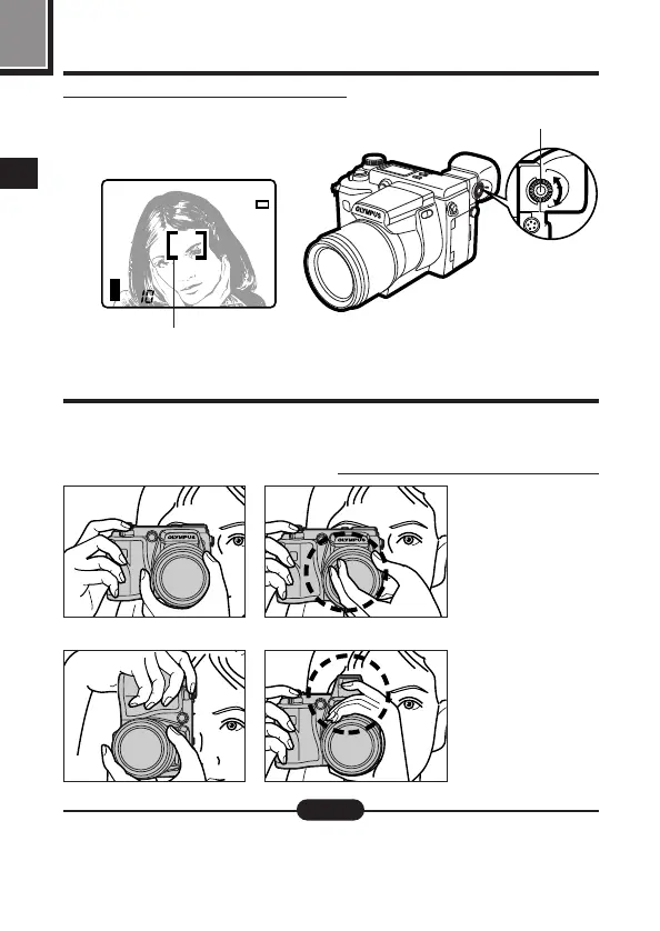 ● Keep your finger and the strap away from the lens, flash, and AF assist