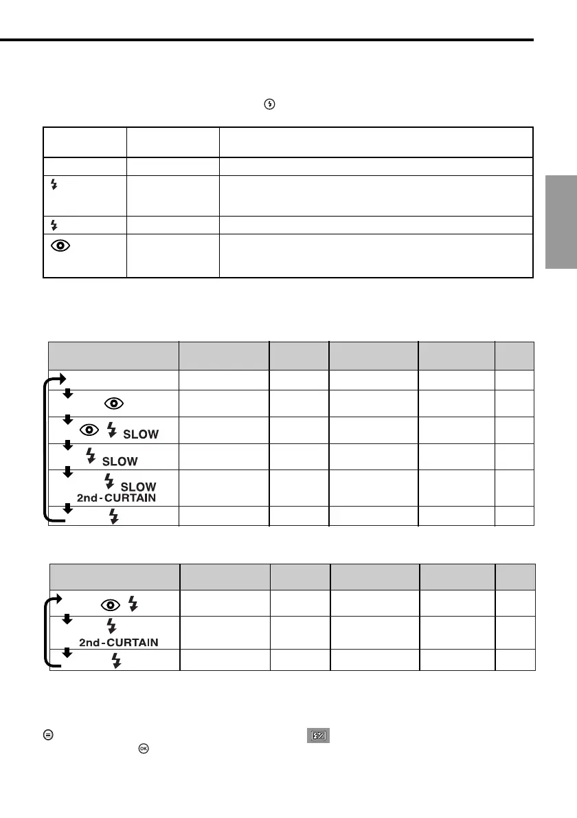 (none) Auto Flash Adjusts flash intensity according to the brightness of the subject.