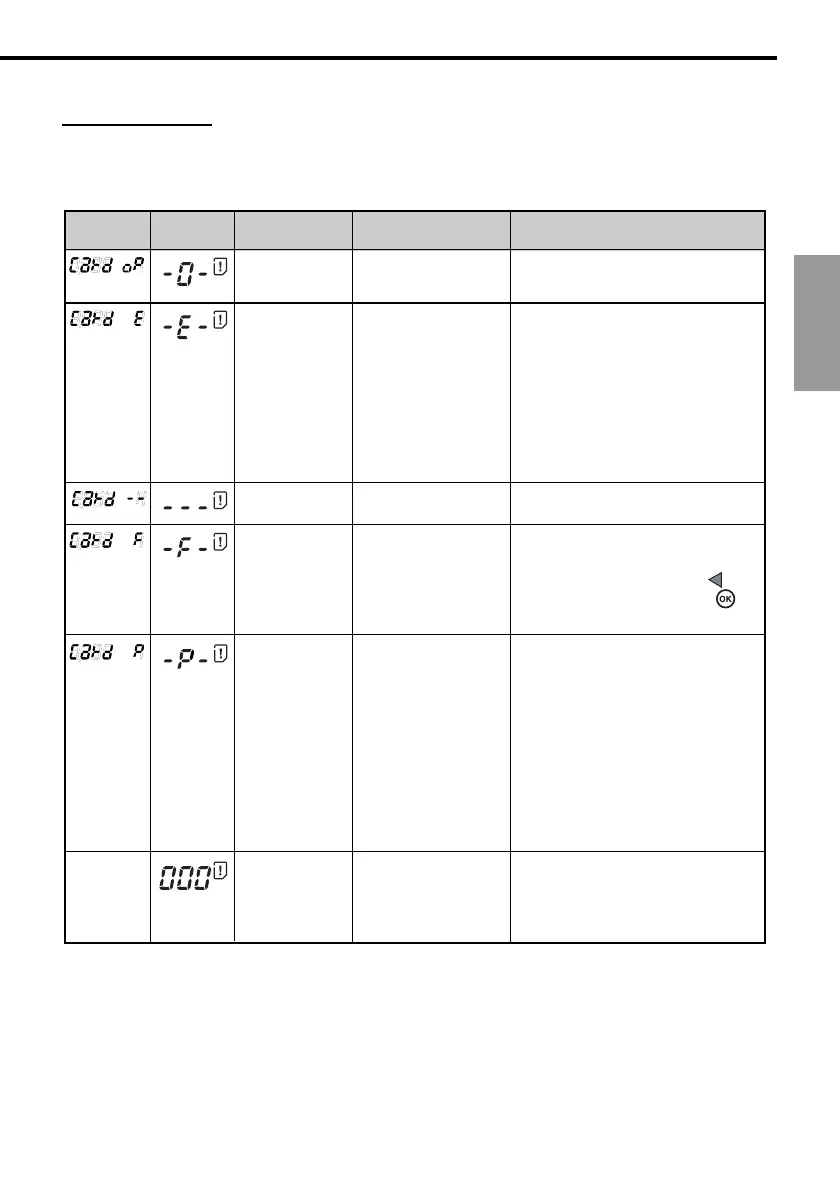 If a problem occurs with a memory card, a message will be displayed in the control panel and the