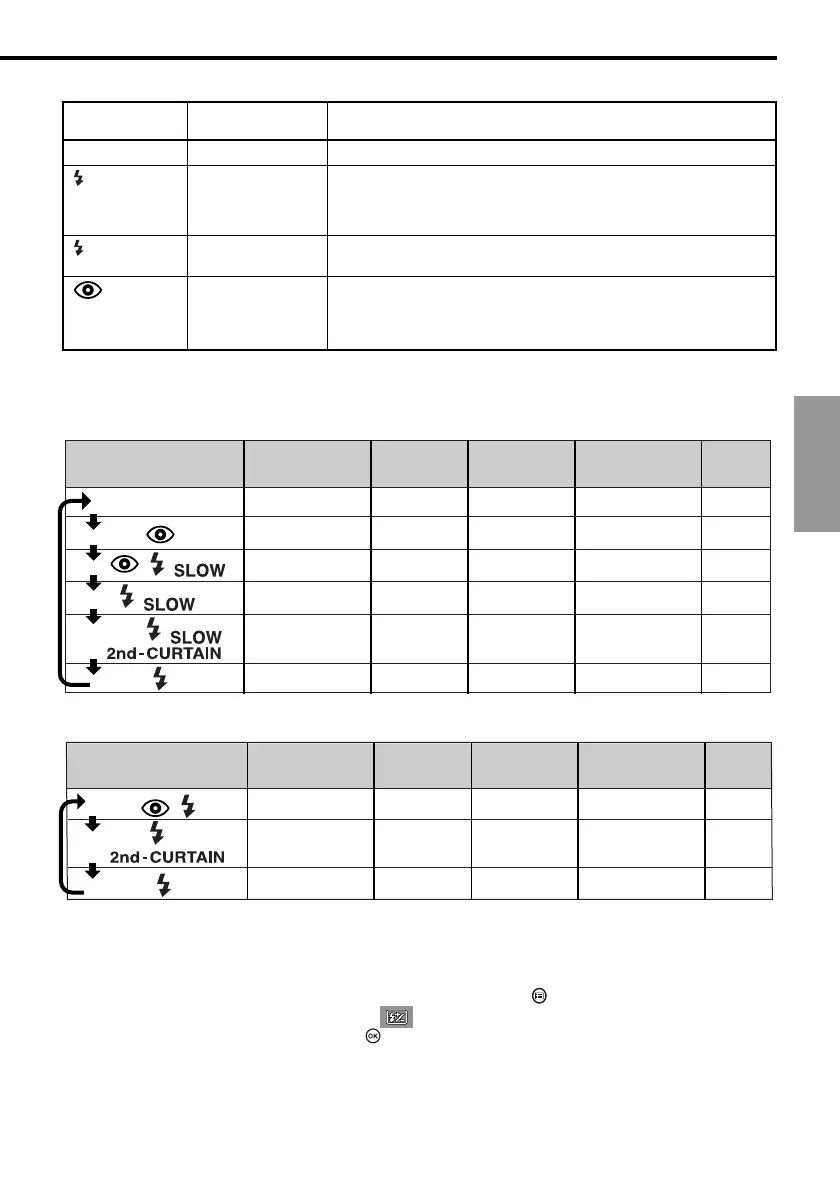 Modes de commande du flash pour les mode P (mode programmé) et A (mode de priorité à l’ouverture)