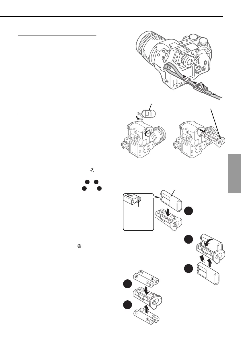 Öse für den Riemen auf der Kamera schieben.