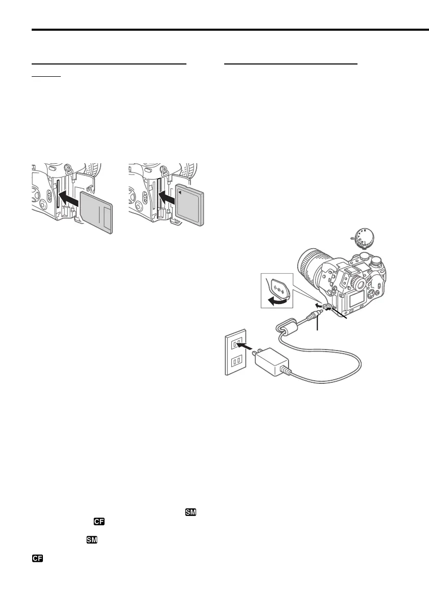 To insert a SmartMedia card, hold it with the