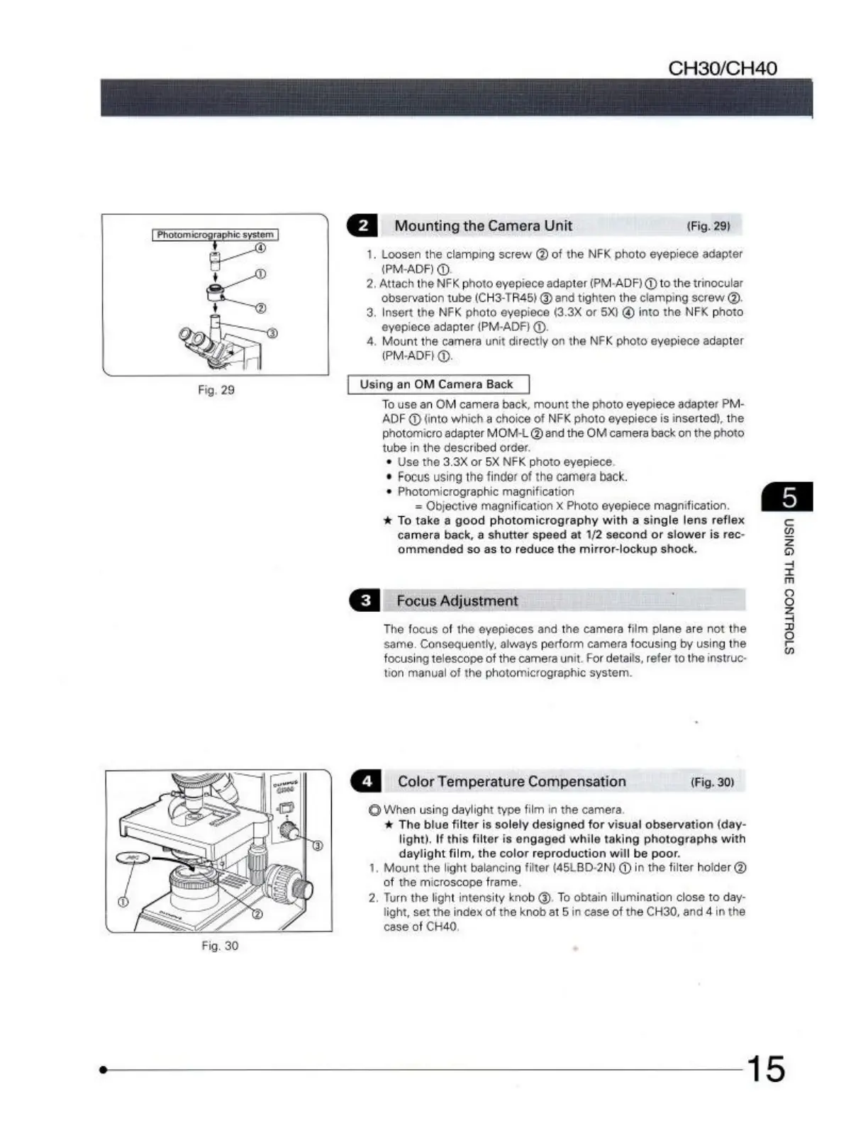 Olympus CH30 - Photomicrography Components; Mounting Camera Unit and Focus Adjustment; Color Temperature Compensation
