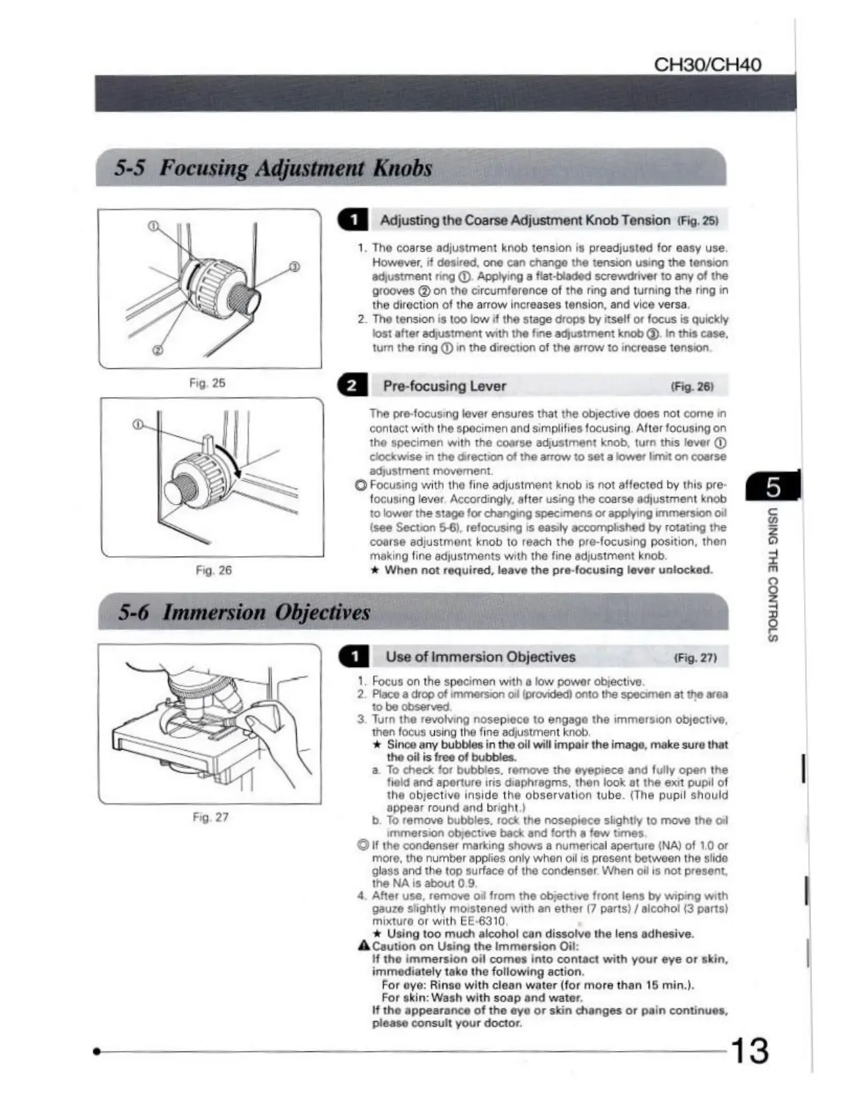 Olympus CH40 - 5-5 Focusing Adjustment Knobs; 5-6 Immersion Objectives