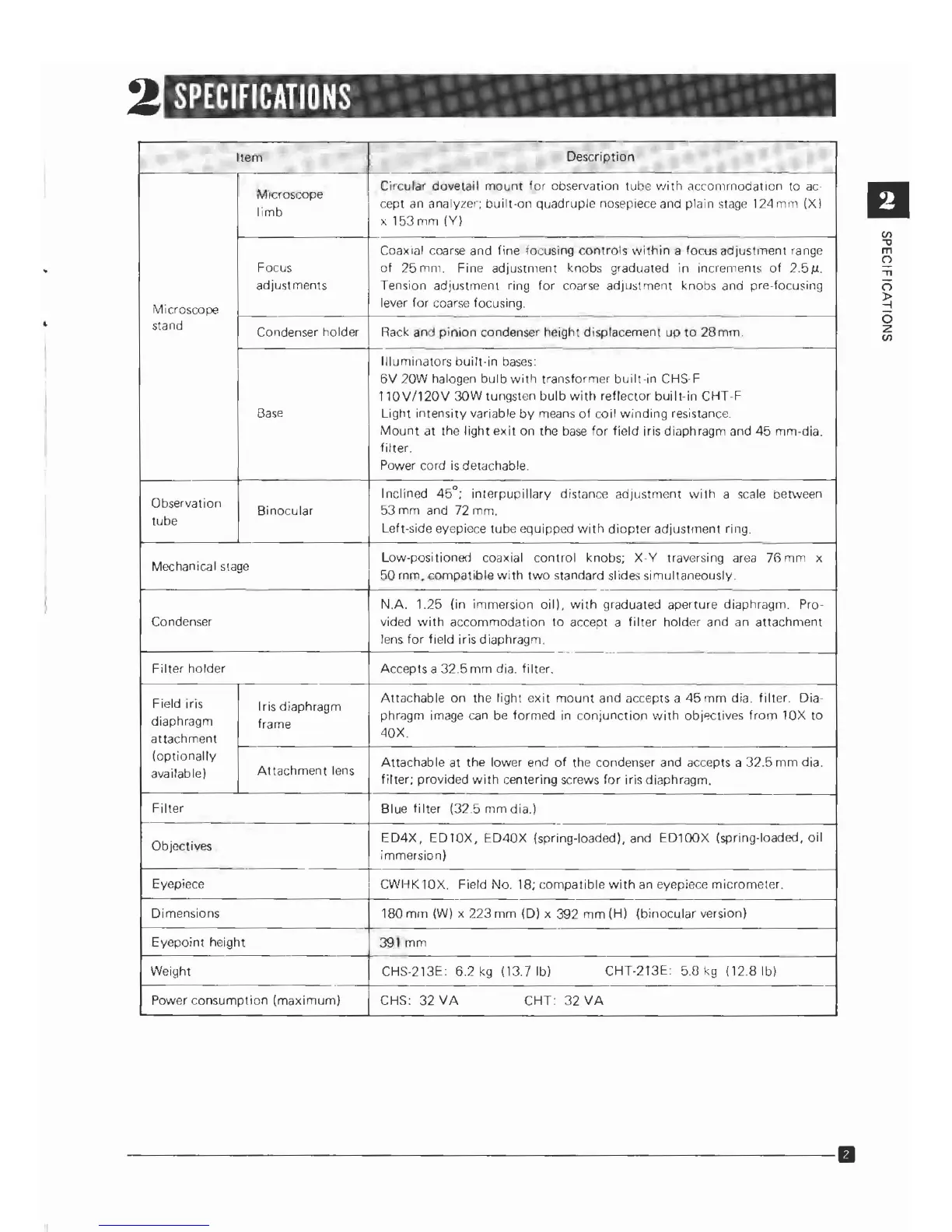 x 392 mm (H) (binocular version)
