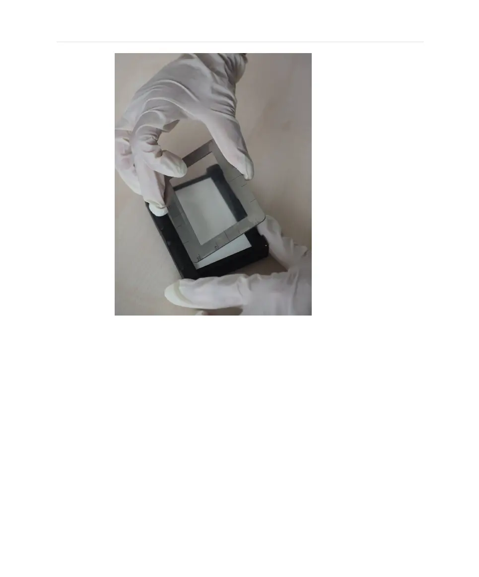 4. Rotate the frame such that the sticky side of the tape faces upwards. The