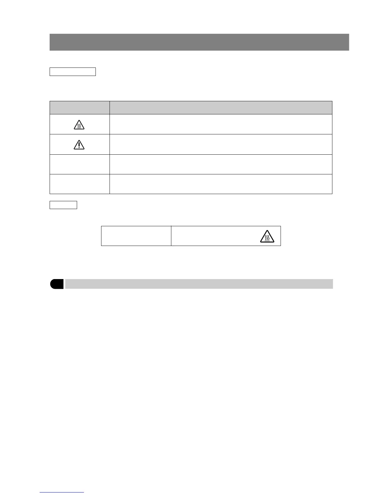 Indicates that the surface becomes hot, and should not be touched with bare hands.