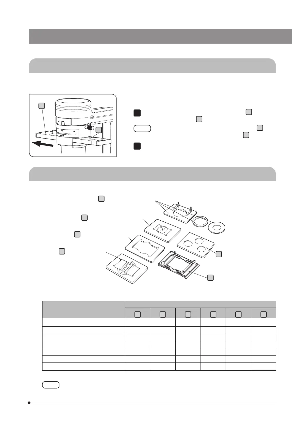 The following table shows the specimen holders corresponding to various containers.