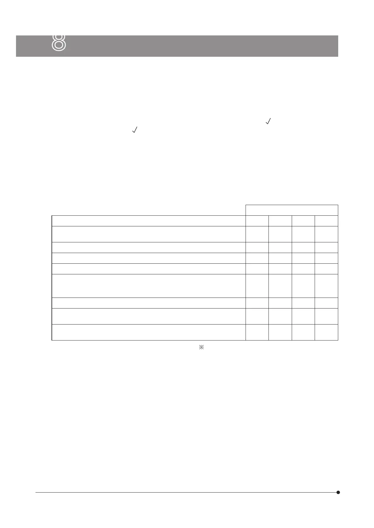 · The table below identifies the check items to be observed. Put (X) if not applicable or (