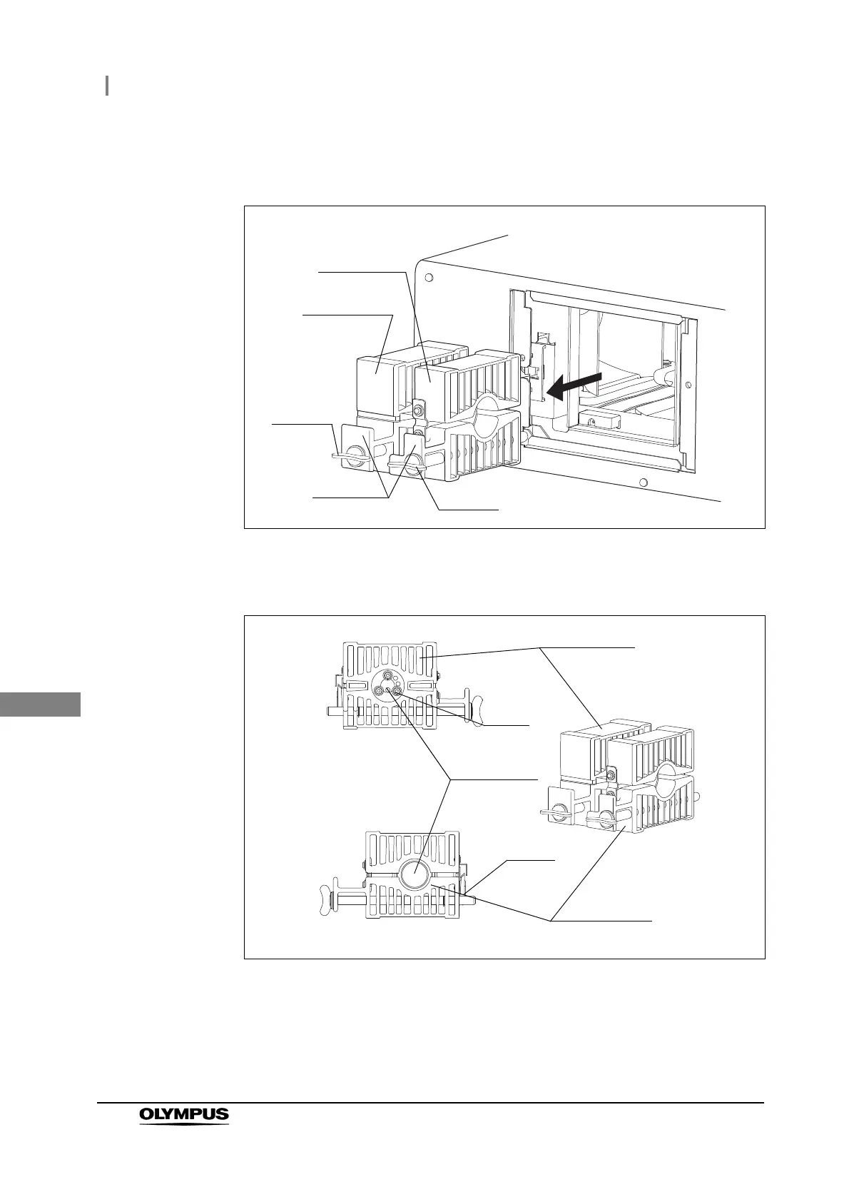10 Holding the knobs or projections of the heat sinks, remove the examination lamp with