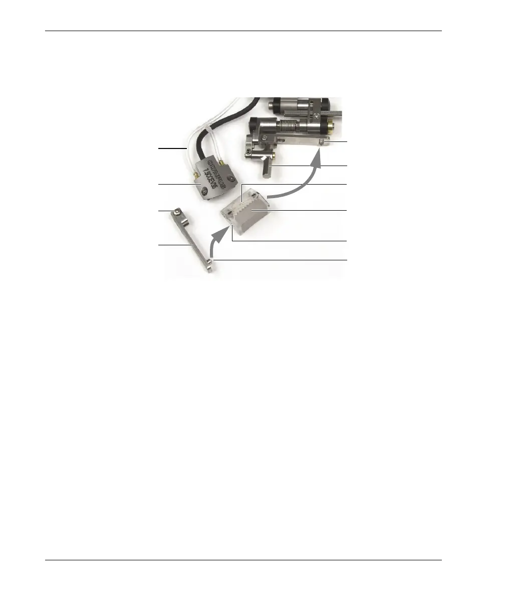 5. Insert the inner probe-holder arm pin into the mounting hole in the wedge (see
