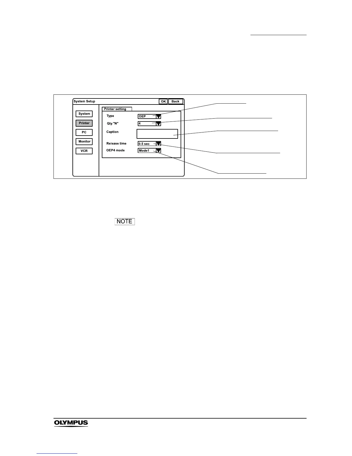 Click “Printer” on the system setup menu. The setting items appear on the right