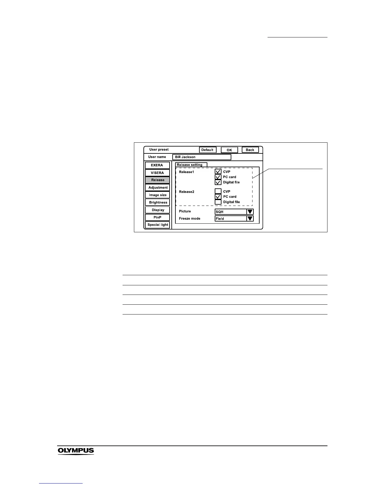 This operation assigns the recording devices to “Release 1” and “Release 2” that