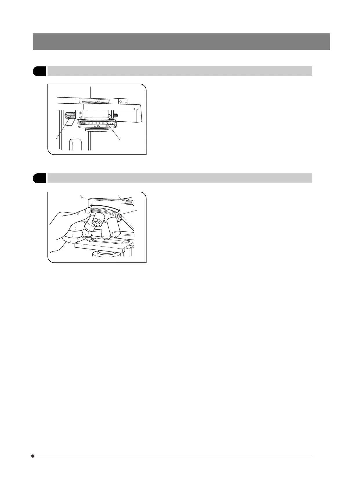 Hold and rotate the revolving nosepiece 1 so that the objective to be