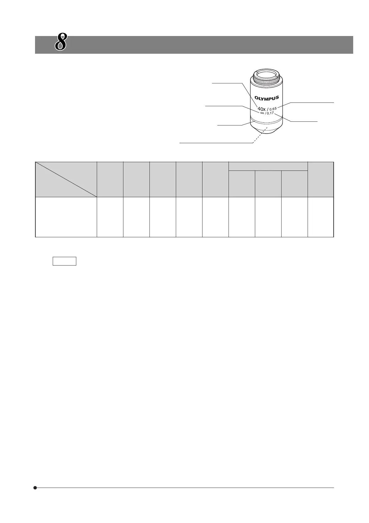 Working distance (WD) : Distance between the top surface of cover glass and the objective extremity.