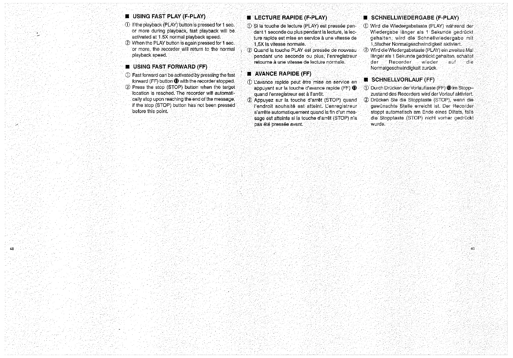 Olympus D1000 - Using Fast Play (F-Play); Using Fast Forwarding (FF)