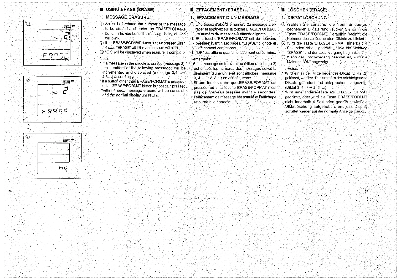 Olympus D1000 - Using Erase; Message Erasure