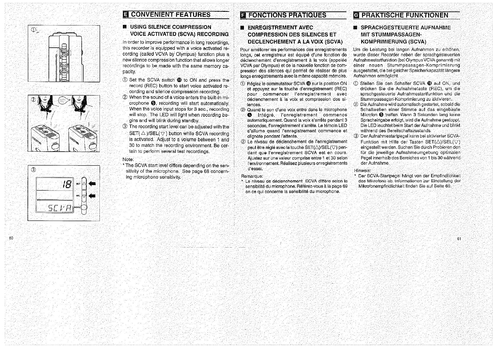 Olympus D1000 - Convenient Features; Using Silence Compression Voice Activated (SCVA) Recording