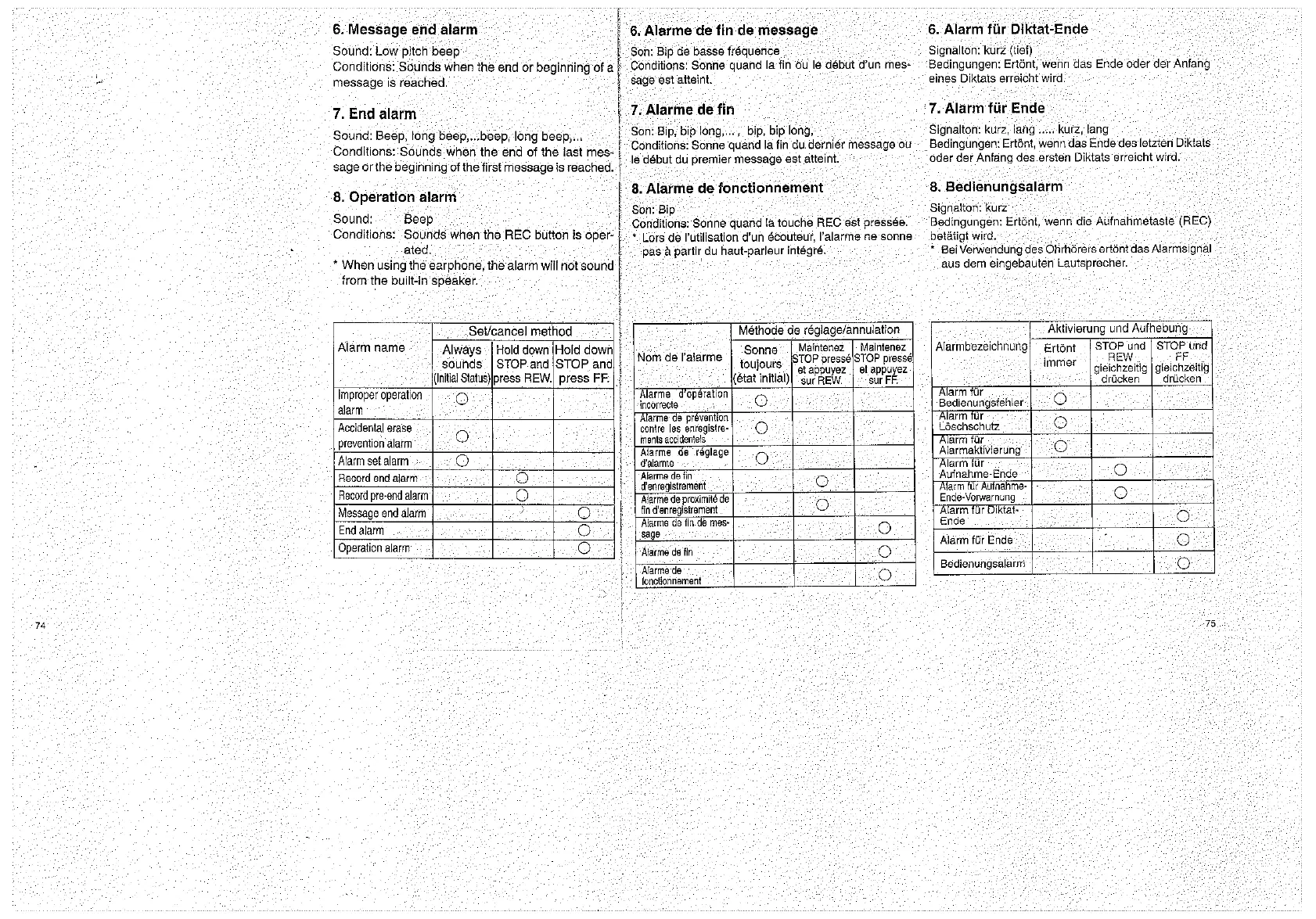 Olympus D1000 - Message End Alarm; End Alarm; Operation Alarm