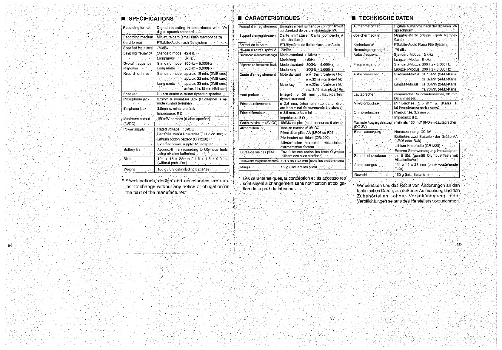 Olympus D1000 - Specifications