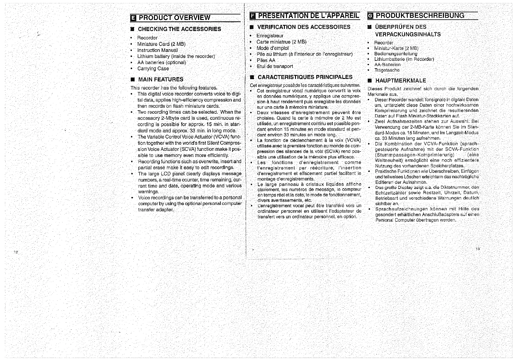 Olympus D1000 - Checking the Accessories; Main Features