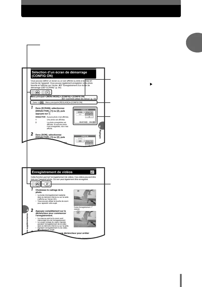 (p. 9), “Notation du mode prise de vue/mode d’affichage” (p. 11)
