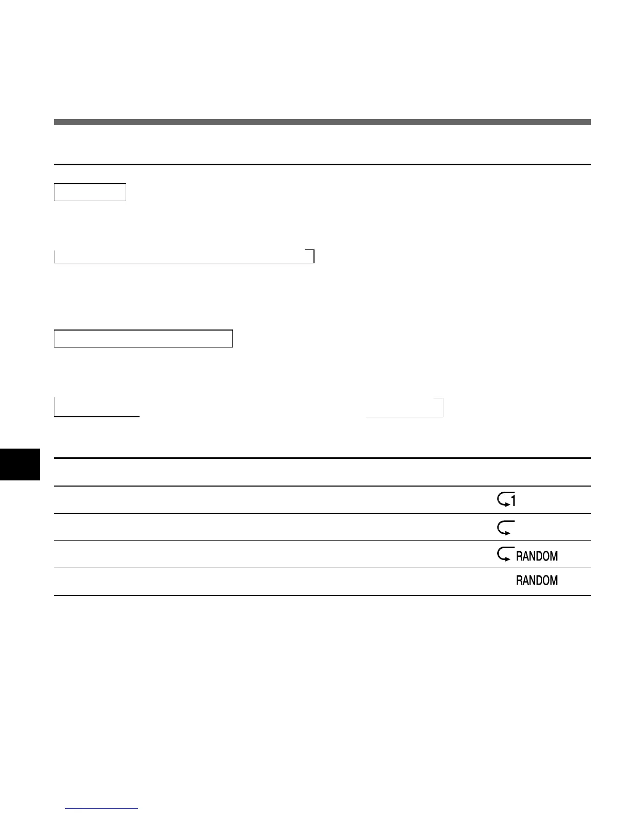 The play mode is switched in the following order each time the FOLDER/REPEAT button is pressed